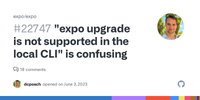 "expo upgrade is not supported in the local CLI" is confusing · Issue #22747 · expo/expo