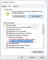 In File Explorer, I can open the folder, but no column headers appear, e.g., name, type, size. It just says, "This folder is empty."