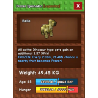 Type: Pet Titanic pet grow a Garden iguadon around 75kg on lvl 100 very good stats 5xp per sec (on lvl 100 with gold mut)
