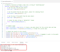 Alternatively if you don't want a trailing 0 on double digit months (Oct, Nov, Dec) you could do a little checking based on month digit length: (new Date().getMonth() + 1).length > 1 ? new Date().getMonth() + 1 : '0' + (new Date().getMonth() + 1)