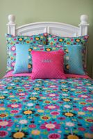 Our beautiful Happy Flowers with Hot Pink Bed-Set includes: (1 large minky blanket 85x60, 2-24 x 24 minky pillow covers, 1 queen minky pillow cover, 1-16x16 minky pillow)