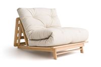 Hakone Twin Tri-Fold Futon Frame by Comfort Pure Minimalistic and Space-saving design with 3 positions Chair, Bed with Head Rest up and Bed. Features: Solid natural beech wood from sustainable forests FSC certified material Easy to convert Hand Rub Natural Oil Finish - No trace of formaldehyde, no chemicals No Exposed Hardware Dimensions: Chair: 35.11"W x 45.28"D x 26.57"H Bed: 35.11"W x 75"D x 3.15"H Mattress is sold separately.Futon Mattress Recommendation: For optimal comfort, a minimum 6" mattress with a foam core is recommended. For daily sleeping, an 8" mattress is ideal for added su