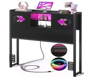 Buy Twin Size Bed Frame with Storage Headboard and Charging Station at Costway, enjoy great savings and discounts with fast, free shipping on everything. • Sturdy plywood slats evenly distribute weight and ensure stability · • Solid pine wood frame boasts a strong weight capacity · • Storage headboard with USB port provides convenient charging for devices · • Hidden light strip in the headboard adds warmth feeling to your bedroom · • Equipped with a power switch to turn on or off the light · • 12" under-bed space leaves enough space for sweeping machine · • Designed to suit storage needs and e