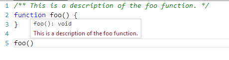 Note: you should not use JSDoc, as explained on TSDoc main page: Why can't JSDoc be the standard? Unfortunately, the JSDoc grammar is not rigorously specified but rather inferred from the behavior of a particular implementation. The majority of the standard JSDoc tags are preoccupied with providing type annotations for plain JavaScript, which is an irrelevant concern for a strongly-typed language such as TypeScript. TSDoc addresses these limitations while also tackling a more sophisticated set of goals.