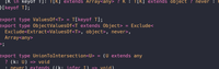 January 15, 2023 - Our type Flatten<T> will be an intersection of two types: ... To find all the keys corresponding to non-object values, we’re going to use an approach similar to the mapped type from my previous article: type NonObjectKeysOf<T> = { [K in keyof T]: T[K] extends Array<any> ?