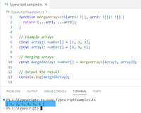 The concat() method returns a new array comprised of the array on which it is called joined with the array(s) and/or value(s) provided as arguments.