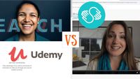I used both and found an overlap in the courses. Some of the creators put the same courses across these sites along with Lynda. Udemy has sales regularly for their courses with no month to month payment so I preferred that one.
