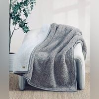 The NWT UGG BLISS SHERPA THROW in Seal Silver is a luxurious and modern rectangular throw blanket made of warm polyester material. THIS UGG BLISS THROW HAS NEVER BEEN OPENED NOR USED. I USED THE PICTURE OF THE ACTUAL BLANKET.