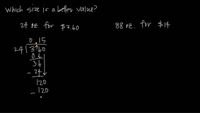 We divide the price by the quantity: 5 / 32 = 0.15625, lets round it up to 16, an ounce of butter costs 16 cents. A packet of ping pong balls which has 12 balls and costs $7. We again divide the price by quantity: 7 / 12 = 0.5833. Each ping pong ball costs 58 cents if we round it down.