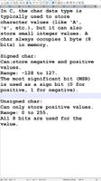 signed char, which gives you at least the -127 to 127 range. (-128 to 127 is common)unsigned char, which gives you at least the 0 to 255 range. This might be useful for displaying an octet e.g. as hex value.