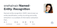 GitHub - snehalnair/Named-Entity-Recognition: Named-entity recognition (NER) (also known as entity identification, entity chunking and entity extraction) is a subtask of information extraction that seeks to locate and classify named entities mentioned in unstructured text into pre-defined categories such as person names, organizations, locations, medical codes, time expressions, quantities, monetary values, percentages, etc.