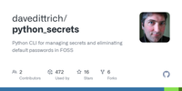 GitHub - davedittrich/python_secrets: Python CLI for managing secrets and eliminating default passwords in FOSS · GitHub