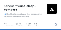 GitHub - sandiiarov/use-deep-compare: 🤿 React hooks, except using deep comparison on the inputs, not reference equality