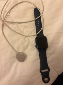 Apple watch Series 6 (GPS) for Sale!!! Barely used, NO SCRATCHES, excellent condition Size- 44MM Blue aluminum case Deep Navy sport band Comes with original box and packaging (see pics).
