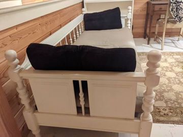 Bedroom Furniture .... $ 360 obo ... Twin bed, like new .... $350 obo ... Solid wood set of 2 twin beds and 1 nightstand. ... Large wall clock. ... SOPHIA VERGARA Silver QUEEN Bed Frame w/ LED-Excellent Condition! ... High Quality Black Metal KING Bedframe-Excellent Condition!