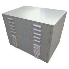 A flat file cabinet is used for storing and organizing paperwork. Most are generously proportioned and designed specifically for blueprints, artwork, maps and other large items. On 1stDibs, shop an assortment of flat file cabinets.
