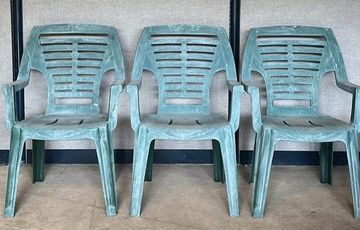 Only $44.00 for the pair PATIO chairs 4 S a l. e great condition excellent for breakfast area - cafe' or tea on patio or deck enjoy the scenery while relaxing on confortable twin chairs please call ... ... -1x table with umbrella hole -2x chair -1x bench Nice big table fits around 6 people comes with a bench that slides under the table when not in use and 2 chairs (including cushions) good condition ... ... Rustic, robust and reclaimed wood is used to make these one of a kind pieces of outdoor furniture.