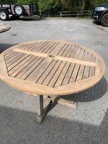47" Teak Outdoor Patio Table · $220 · Campbell Hall · Teak Outdoor Furniture, tables, chairs, patio and dining sets · $50 · Campbell Hall · PATIO 3 PIECE SET PUB STYLE HEIGHT & CHAIRS FOLD · $80 · New Windsor · Raymour and Flanigan Patio table with 4 chairs ·