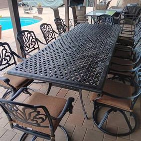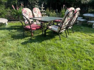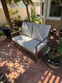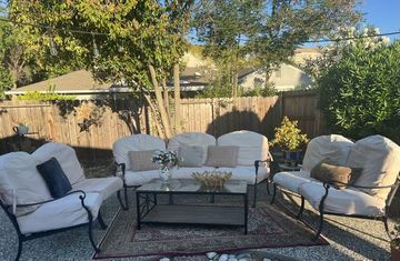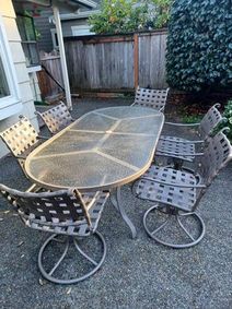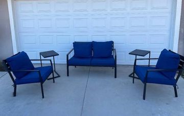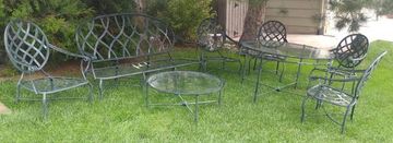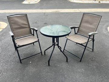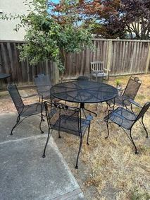 New Furniture Inventory Hit The Floor This Week! ... Outdoor Patio Table with 2 Chairs (Metal) - Good Condition!!! ... Moving sale! ... Benicia Ca. Vintage Woodard Wrought Iron Patio Set w/Glass Top Table & chairs ... Used shag rug - moving sale!