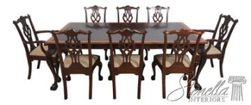 Leopold Stickley was brother to Gustav Stickley and both had their own furniture companies. Both were originally associated with the Arts and Crafts movement, but this set is quite a while after that era. This set is almost certainly from the early 50's. Leopold Stickley had its line of "traditional" styled furniture called "Cherry Valley" This had colonial, Victorian, and as you have Queen Anne style chairs that could be mixed and matched with a series of tables. In a quick search on newspapers.com I found your table in a 1952 ad, but not your exact chairs but its pretty safe to say they are also from around this time period. Leopold Stickley was known for his interest and advancement in making quality furniture, and to this day a lot of their A&C stuff is pretty collectible. However, this mishmash traditional style is very much a product of the mid 20th century and to most young consumers (who are the primary purchasers of used furniture) this stuff usually goes by "brown grandma furniture". I can't give you any kind of value because this is really far out of my wheelhouse (am know a lot about all eras of modern furniture but very little about tradtional) I will say it is almost a certainty that is set was worth probably 5x more than it is now (not even adjusting for inflation) in the 1980's than today. The vast majority of antique and antique styled furniture has taken an absolute bloodbath in value since the resurgence of MCM furniture beginning in the mid 1990's. More on reddit.com