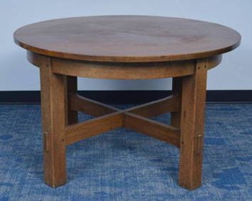 STICKLEY Mission Oak Round Inlaid Occasional Table · #32 Finish Harvey Ellis Design Arts & Crafts Style Offered @ Fraction Original Retail Cost Well Cared For Table Ready For Your Home More Details