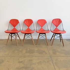 Elevate your home bar or kitchen island with this exceptional set of three contemporary swivel bar stools. Crafted with exq... ... Eames Management Chairs in Grey Fabric Upholstery c. 1980 - 1990s 4 Available ... Sharp set of 4 Eames aluminum group management chairs in gray fabric, with cast aluminum frames. The chairs are all in great, original, clean and ready to use condition, all are mark...