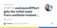 useLayoutEffectfires in the same phase ascomponentDidMountandcomponentDidUpdate. However, we recommend starting withuseEffectfirst and only tryinguseLayoutEffectif that causes a problem.