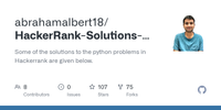 October 22, 2017 - Some of the solutions to the python problems in Hackerrank are given below. - HackerRank-Solutions-in-Python/Regex Validating and Parsing Email Adresses.py at master · abrahamalbert18/HackerRank-Solutions-in-Python