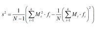 October 9, 2019 - By using the midpoints are the representative of the values in the classes, we can use this familiar formula to get the variance of grouped data: \[ s^2 = \frac{ 1}{N-1}\left(\sum_{i=1}^n M_i^2 \cdot f_i - \frac{1}{N}\left(\sum_{i=1}^n M_i \cdot f_i \right)^2 \right) \] where the values \(M_i\) are the midpoints, \(n\) is the total number of classes, and \(N\) is the total sample size. You can also use this sample mean of grouped data calculator if you are instead interested in computing the sample mean, because you may be interested in analyzing the measures of central tendency as opposed to the measures of dispersion