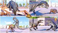 Additional Velociraptor skins were added in the Raptor Squad Skin Collection and Return to Jurassic Park, both of which introduce skins and updated models based on their appearances in both the Jurassic Park and Jurassic World trilogy. Velociraptor then returned in the base game of Evolution 2 and Evolution 3.
