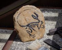 November 2, 2025 - Today, Velociraptor is well known to paleontologists, with over a dozen described fossil skeletons. One particularly famous specimen preserves a Velociraptor locked in combat with a Protoceratops. During an American Museum of Natural History expedition to the Flaming Cliffs (Bayn Dzak or Bayanzag) of the Djadochta Formation, Gobi Desert, on 11 August 1923, Peter Kaisen discovered the first Velociraptor fossil known to science—a crushed but complete skull, associated with one manual claw and adjoining phalanges (AMNH 6515).