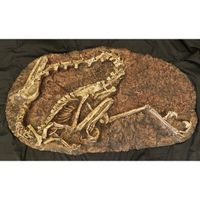 Velociraptor osmolkae.Late Cretaceous Gobi Desert Raptor of China and MongoliaPolyurethane cast from a private collector. · Early specimen found in 1923. · 41in. long. 23 1/2in.Wide