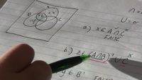 $$x = |A\cup B\cup C| - |A| - |B| - |C| + |A\cap B| + |B\cap C|+|C\cap A|$$