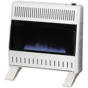 Bluegrass Living Propane Gas Vent Free Blue Flame Gas Space Heater With Blower and Base Feet - 20,000 BTU, T-Stat Control - Model# B20TPB-BB · The Bluegrass Living ventless blue flame gas wall space heater operates on Liquid Propane Gas and gives you 20,000 Maximum BTU of reliable supplemental ...