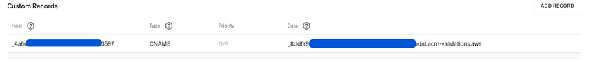 All you need to do is go into the ACM domain validation, and find the two DNS records it is asking you to create in order to verify you own the domain. Then go over to your Squarespace DNS settings, and add those two DNS records. After that, the ACM service should soon detect that you have created the records and then it will issue you the SSL certificate.