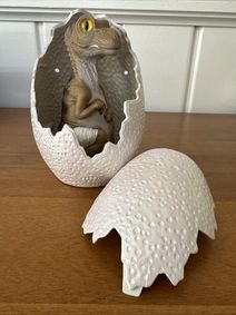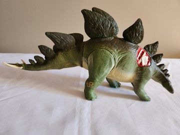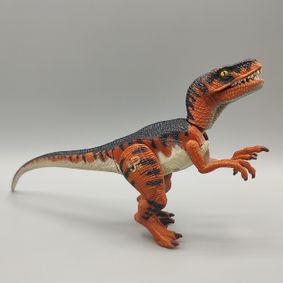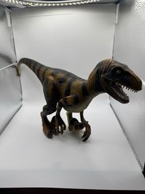 November 8, 2023 - This is the ‘Snap Jaw’ Electronic Velociraptor from the Jurassic Park Lost World Kenner toys Line in 1997. Electronics are working with three button CeL batteries that are NOT included. Battery compartment is clean with signs of use and dinosaur shows minimal light playwear with some paint lose to claw tips and very minor lose on underbelly. Dino measures 12” inches across. *as with all vintage items there are NO returns allowed.