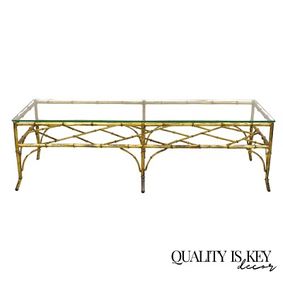 A Wonderful Emilio Rey Spanish Gold Gilt Metal & Beveled Glass Top Coffee / Cocktail Table. 17" T ... Vintage Italian Hollywood Regency Scrolling Gold Metal and Glass Coffee Table.