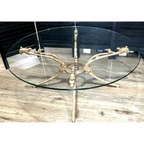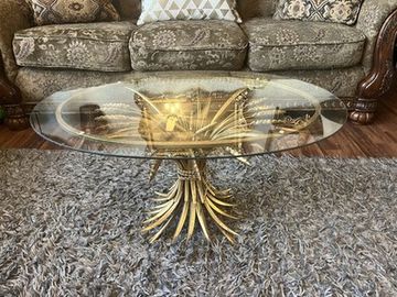 suebeevintagerentals.com › home › coffee & other small tables › gold & glass oval coffee table