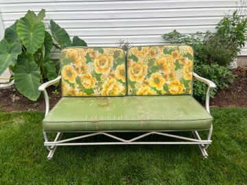 Elevate your outdoor space or patio with this rustic ... A pair of mid-century green metal patio or garden chairs. In the south, these patinated beauties ... Vintage Burgess England Mid Century Modern Iron Metal Patio Set Chairs Loveseat. Listing includes ... Mid century modern Russell Woodard Sculptura bench / settee / loveseat and rocker armchair. Made ... Garden Patio Poolside Metal Rocking Chair Att. to Woodard · By Woodard Furniture ...