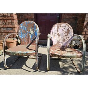 Vintage Outdoor Chairs - Shell Back Metal Lawn Chair