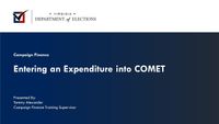 COMET - Committee Electronic Tracking ยท COMET Tutorials on YouTube ยท Independent Expenditures ยท Campaign Finance Reports ยท The Virginia Department of Elections Campaign Finance assures the integrity of the Commonwealth's electoral process ...
