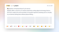 📱 Key Features Virtual try-on capability using full-body photo and clothing image Customizable fitting strength adjustment (range 0-50) Style transfer intensity control (range 0-1) Intuitive orange-themed user interface Real-time automatic image resizing 28-step sampling for high-quality image generation Quick demonstration through diverse example images Efficient image generation via batch processing Real-time progress tracking with progress bar 💫 Technical Highlights Utilization of FLUX.1 Redux and Depth models High-quality image generation using VAE (Variational AutoEncoder) Sophistic