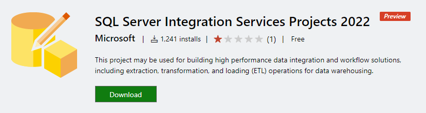Microsoft released Version 1.0 (General Availability (GA) release) of the SQL Server Integration Services extension for Visual Studio 2022.