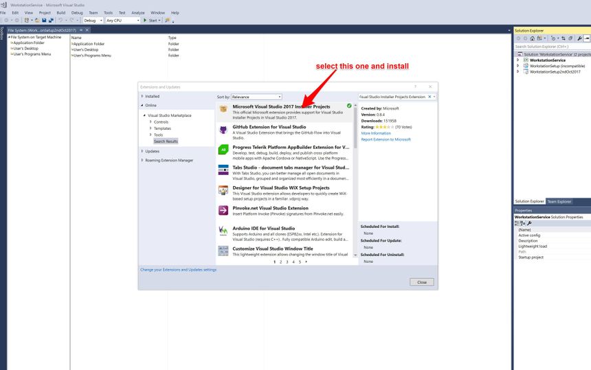 Visual Studio Marketplace: Microsoft Visual Studio 2017 Installer Projects