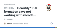 Beautify 1.5.0 format on save not working with vscode 1.50.1 · Issue #108878 · microsoft/vscode