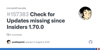 Check for Updates missing since Insiders 1.70.0