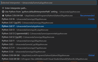 Python executable path in vscode is incorrect