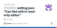 setting.json "Can Not edit in read-only editor"