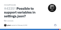Visual Studio Code supports variable substitution in Debugging and Task configuration files as well as some select settings. Variable substitution is supported inside some key and value strings in