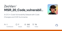 GitHub - ZeoVan/MSR_20_Code_vulnerability_CSV_Dataset: A C/C++ Code Vulnerability Dataset with Code Changes and CVE Summaries · GitHub